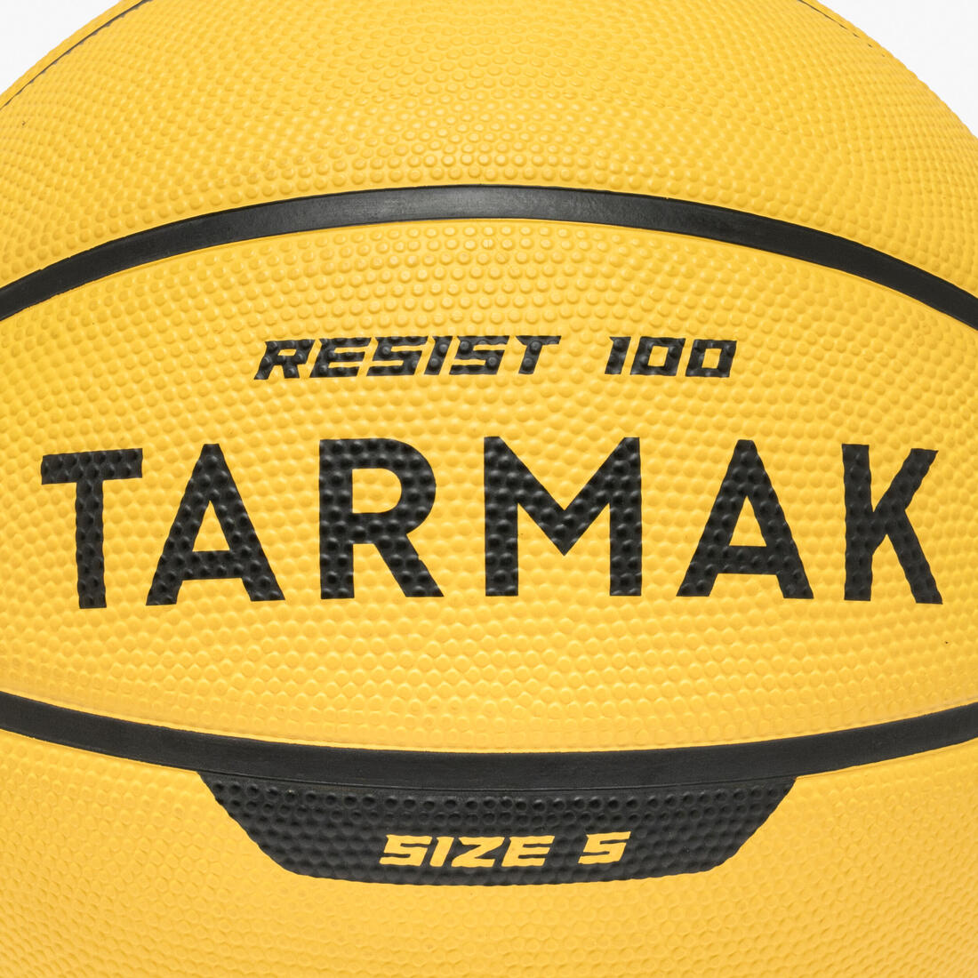 Ballon de basket r100 de taille 5 jaune jusqu'à 10 ans pour débuter.