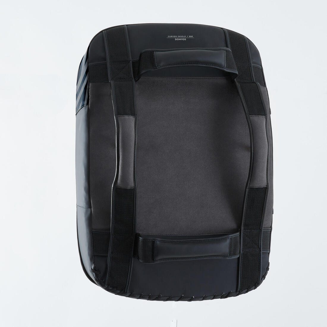 Le bouclier courbe 500 est fabriqué avec de la mousse mono-couche afin d’assurer un amorti optimal contre les chocs lors de l'entraînement aux sports de combat à la fois pour le boxeur et son partenaire. Le revêtement synthétique (PU) confère une très bonne résistance à l’abrasion. Quatre larges poignées assurent une parfaite préhension pour un maintien optimal. Un empiècement en suédine permet de limiter les frottements contre le PU:(glissement , brûlure ).