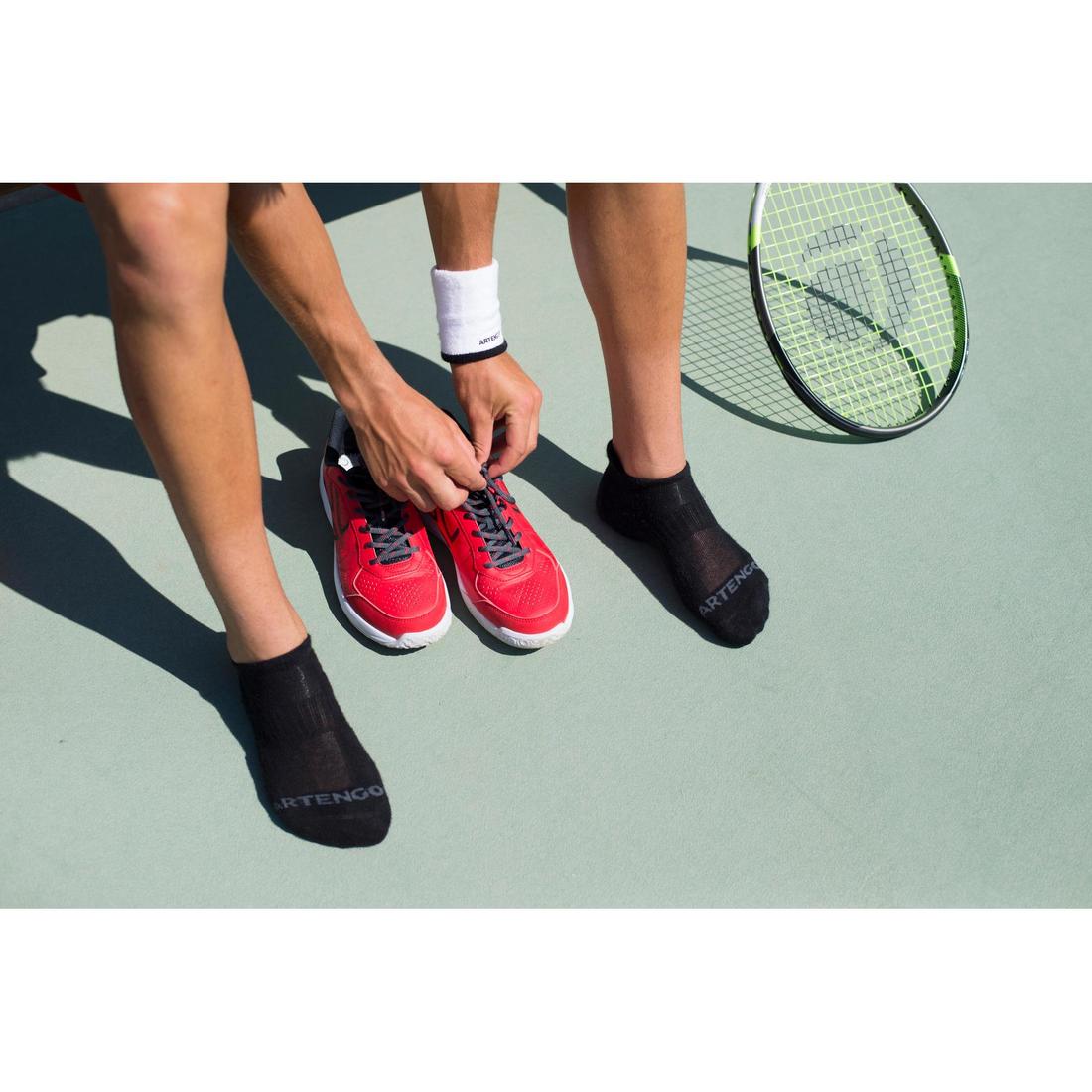 Le tissu au niveau de la bouclette, plus épais et plus moelleux, vous apporte plus de résistance et de confort. Cette chaussette de tennis Artengo permet a la bouclette d'envelopper votre pied pour un maximum de confort et de résistance. Une zone d'aération en mailles piquées se situe sur le dessus du pied et permet a votre pied de mieux respirer dans la chaussure.