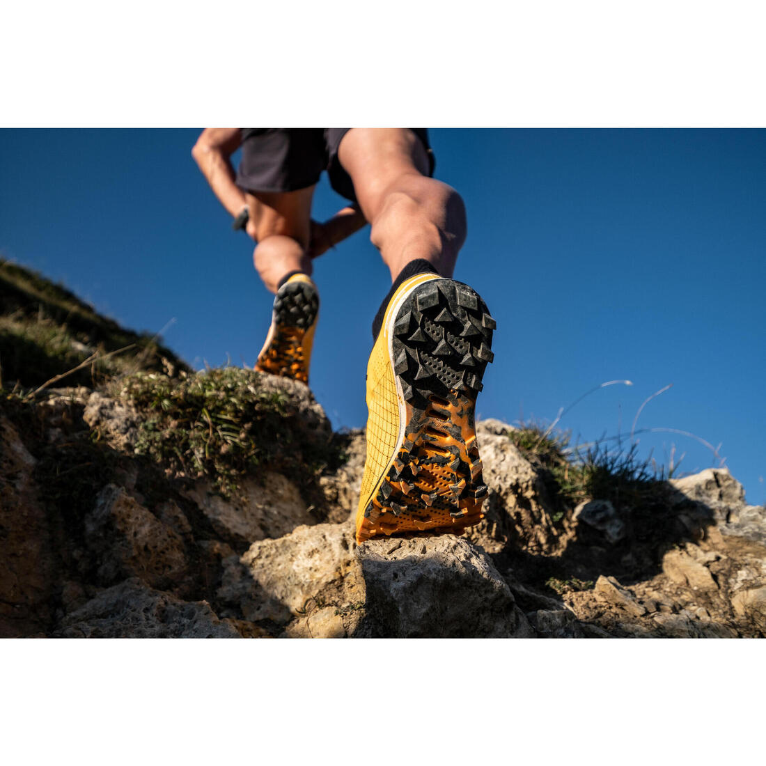 Observez donc le profil de la Race Light... Vous voyez cette arête en relief qui évolue le long de votre semelle ? Il s'agit du concept Up Bar®, une technologie empruntée à Kiprun (road running), plaque travaillée avec des podologues. L'objectif ? Optimiser le dynamisme de votre foulée et son juste retour d'énergie en rigidifiant ces deux appuis sans gêner le mouvement de votre pied.