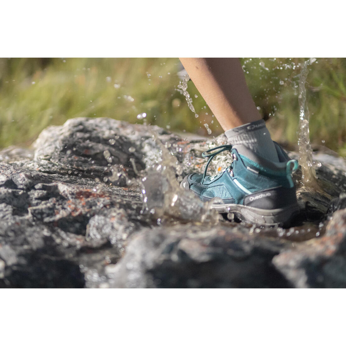 Pour garder les pieds au sec, il est conseillé d'utiliser une guêtre ou une mini-guêtre imperméable qui protégera le haut de la chaussure de l'entrée d'eau, mais aussi des cailloux, du sable... Nous vous conseillons de ré-imperméabiliser 2 fois par an vos chaussures à l'aide d'un imperméabilisant (recherchez ""imperméabilisant"" sur notre site decathlon) qui permettra de retrouver la déperlance d'origine et de lutter contre les tâches extérieures.