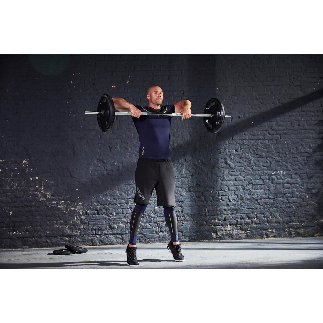 Le revêtement caoutchouc de ce disque de fonte pour la musculation permet d'absorber les chocs et les bruits tout en préservant vos sols. Ce poids est compatible avec toutes les barres 28mm.