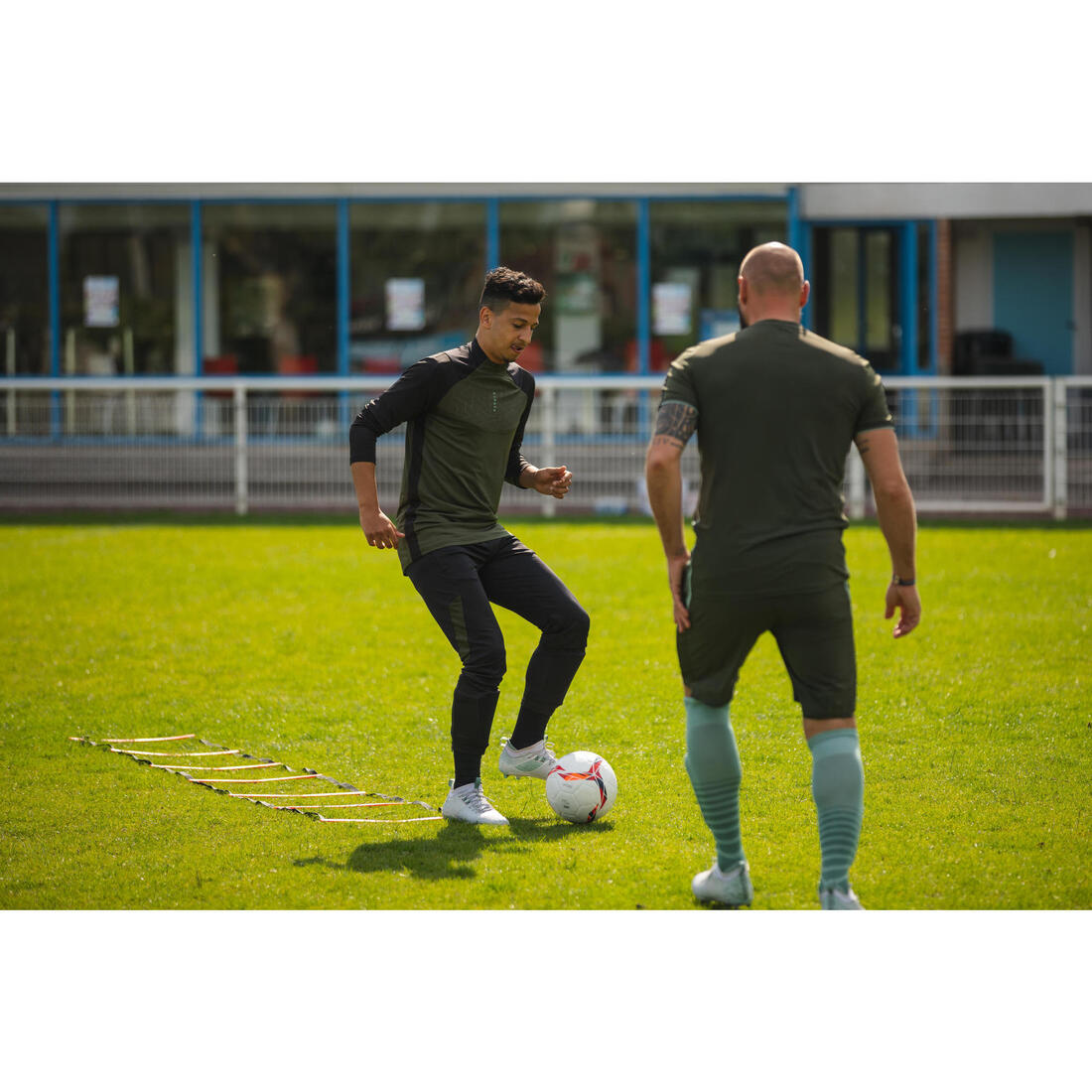 Avoir une forme intuitive et reconnaissable, c'est important. Mais progresser dans des entraînements sûrs, c'est notre priorité. C'est pourquoi nous avons vérifié la résistance de l'échelle de rythme lors de tests exigeants. Sur les terrains du Kipstadium, à Tourcoing, nous avons mis les lattes de l'échelle, avec leur forme singulière, à rude épreuve, pour nous assurer de leur résistance mais aussi de leur stabilité. Résultat : votre échelle ne bouge pas et ne s'abîme pas lors des exercices.