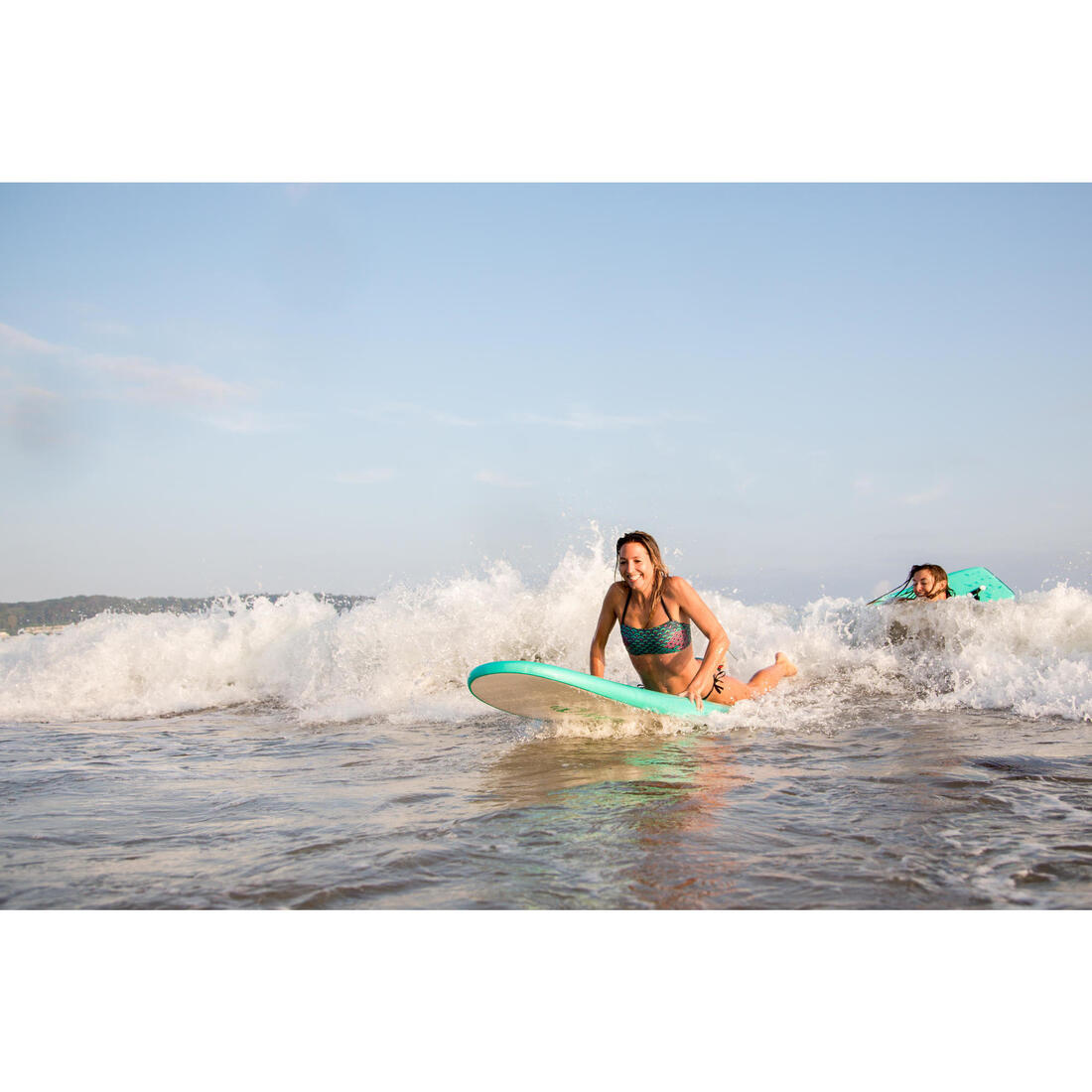 Nous, surfeuses de tous niveaux, avons conçu ce maillot de bain pour la surfeuse débutante qui surfe dans les mousses.