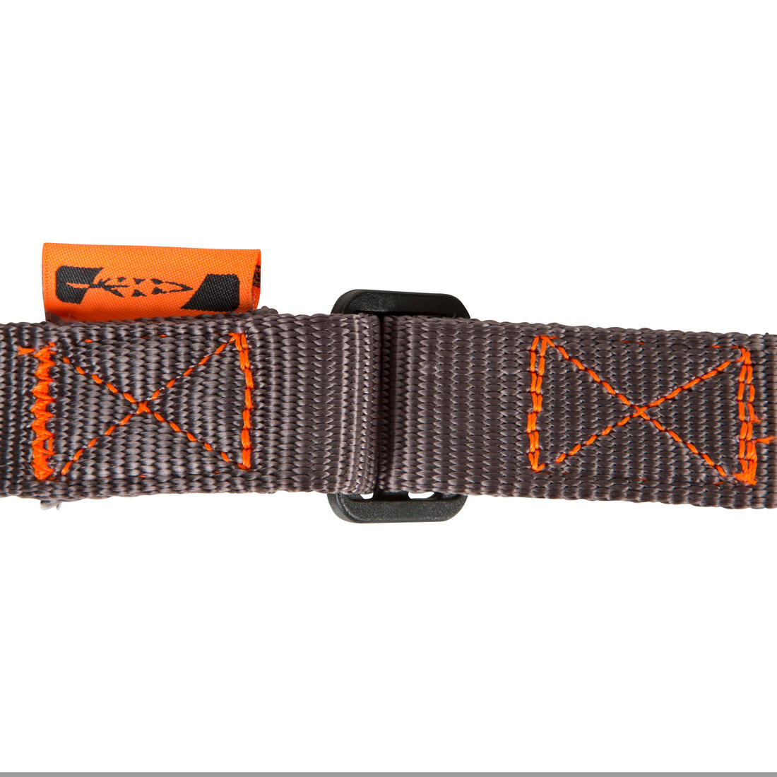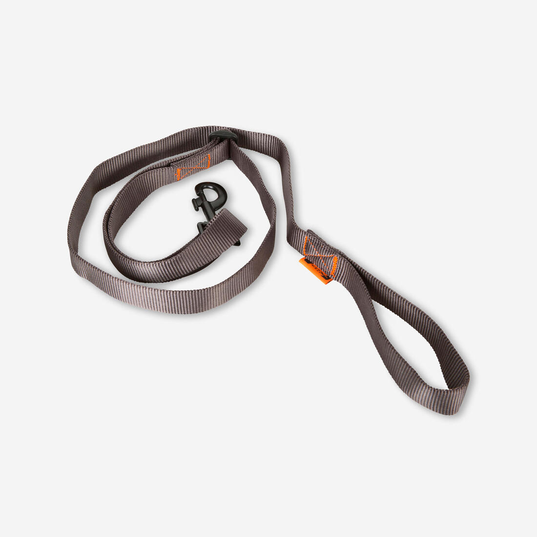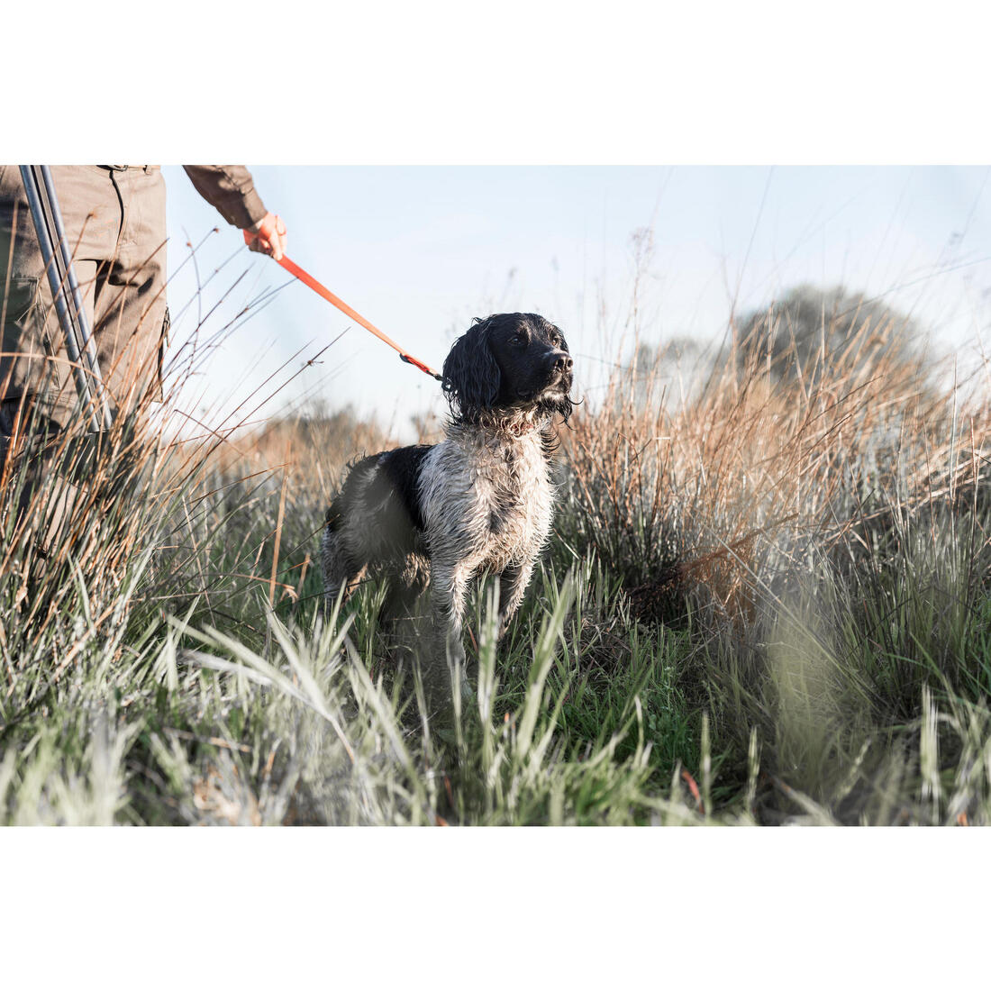 Cette laisse orange est résistante, ajustable et imputrescible.