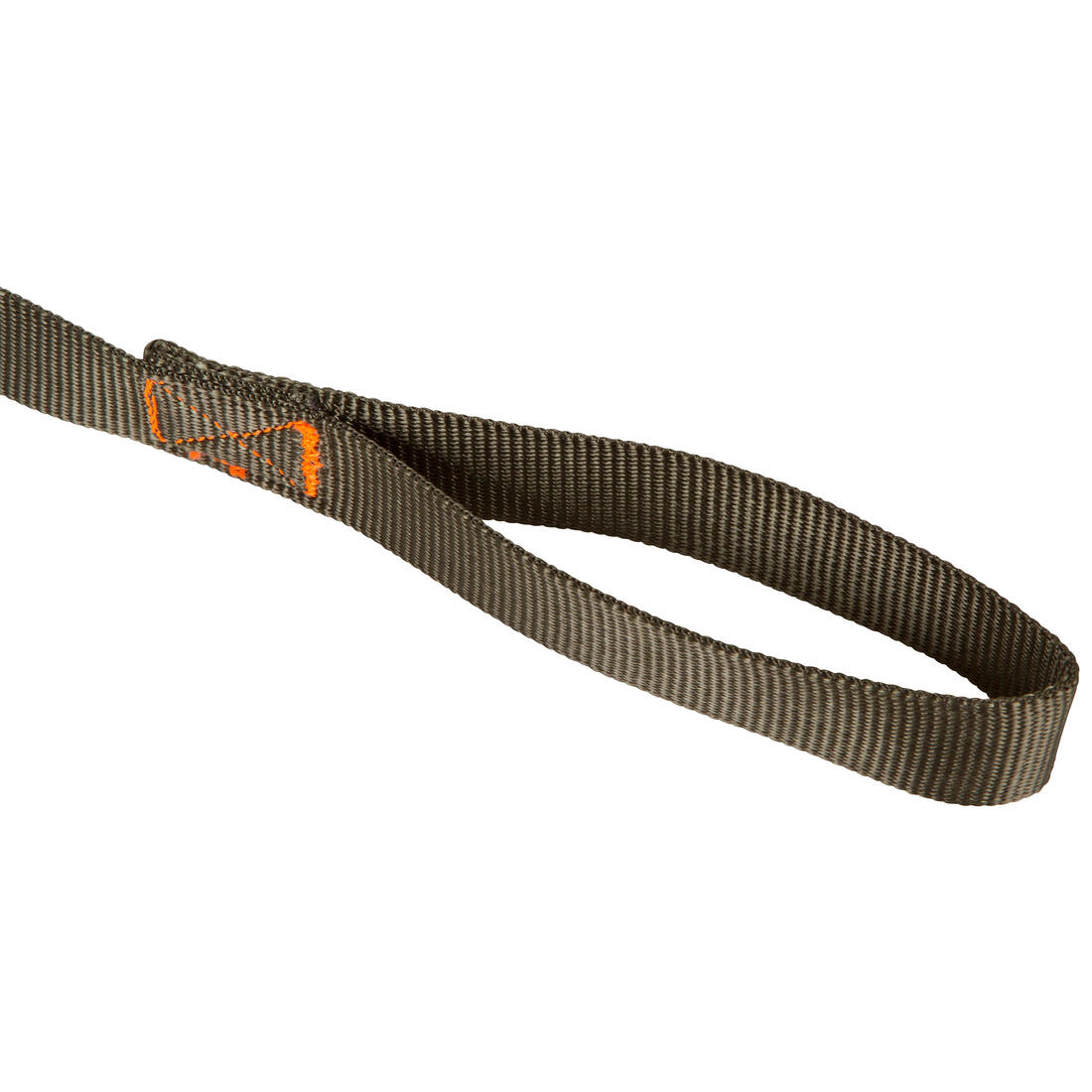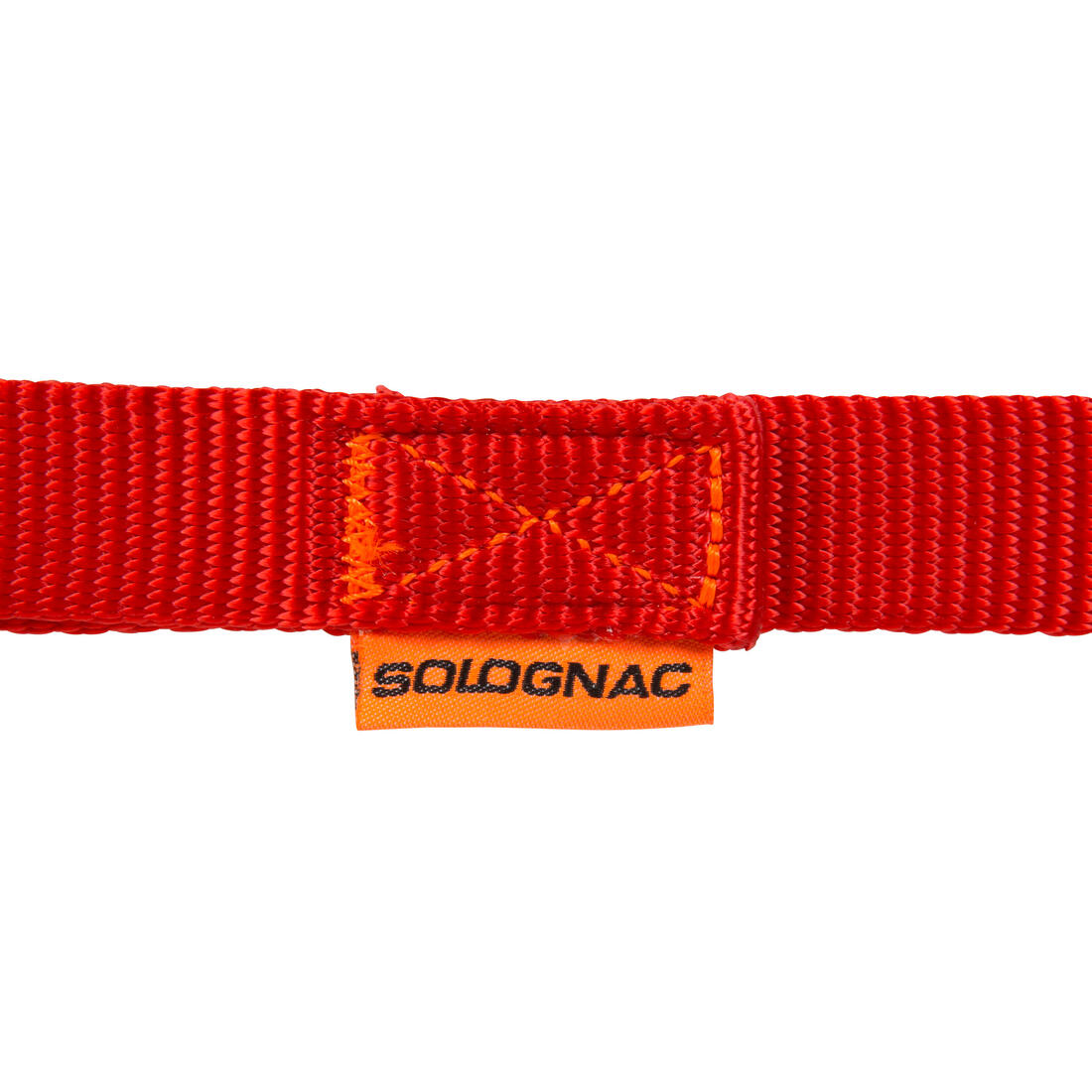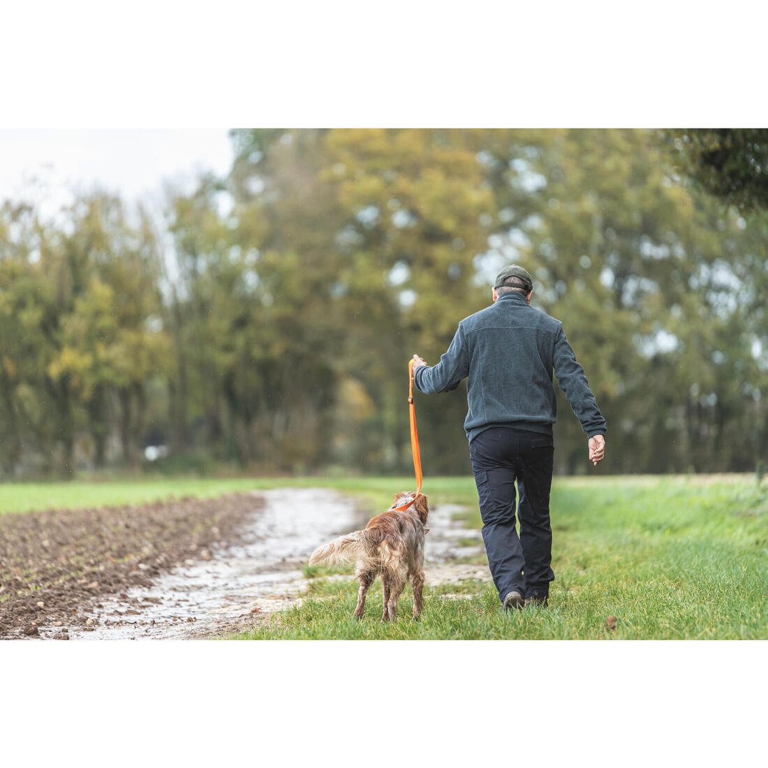 Cette laisse orange est résistante, ajustable et imputrescible.
