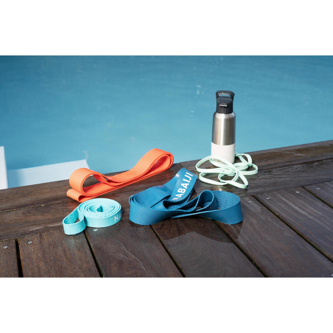 Envie de plus d'intensité pendant vos exercices ? Haut du corps ou bas du corps , augmentez la difficulté de résistance dans l'eau en utilisant un élastique aquatique, résistants au chlore .