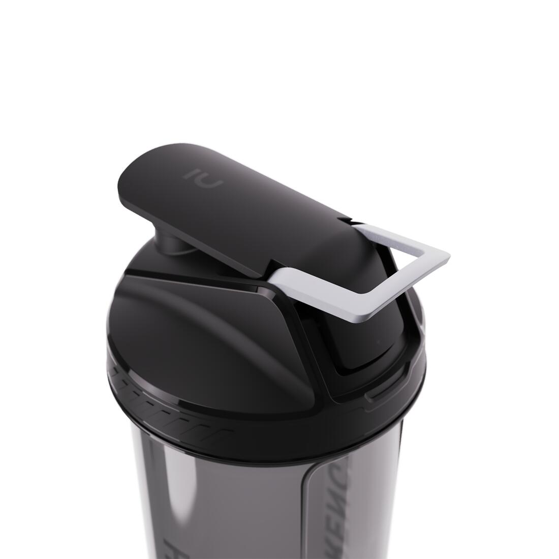 Bouchon avec double 'clac' audible de fermeture sécurisant et garantie zéro fuite. Anse de transport permettant au shaker d'accompagner vos déplacements sportifs