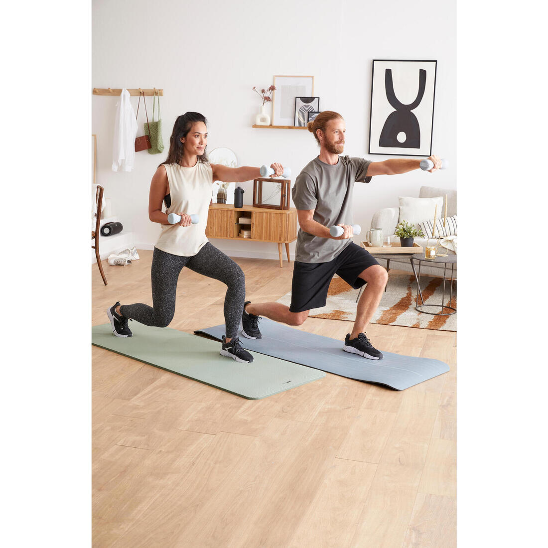 Les haltères de 3 kg seront recommandés pour le travail du bas du corps (fentes, squats, etc.), car les muscles sollicités sont généralement plus puissants que ceux du haut du corps. Ils conviennent surtout aux sportifs.ives expérimentés.es. Leur taille compacte les rend parfaits pour un entraînement à domicile.