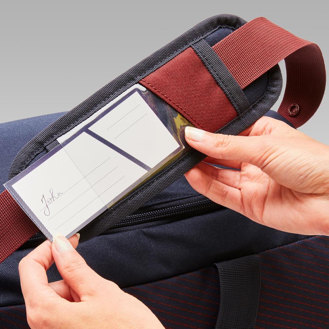 Sur le portage épaule, nous avons pensé à mettre une pochette pour ajouter ses informations personnelles (nom, adresse). C'est indispensable pour repérer son sac au sein du collectif.