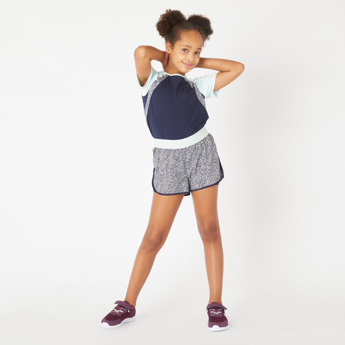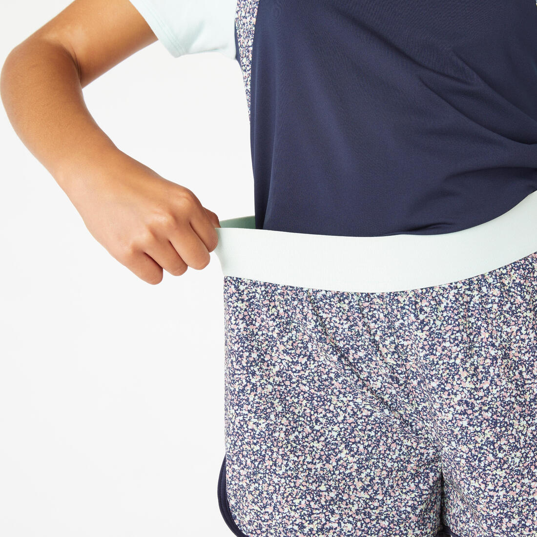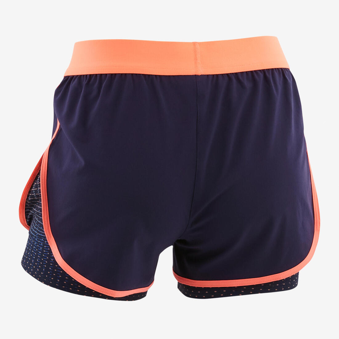 Short 2 en 1 multisport respirant fille, imprimé bleu et corail