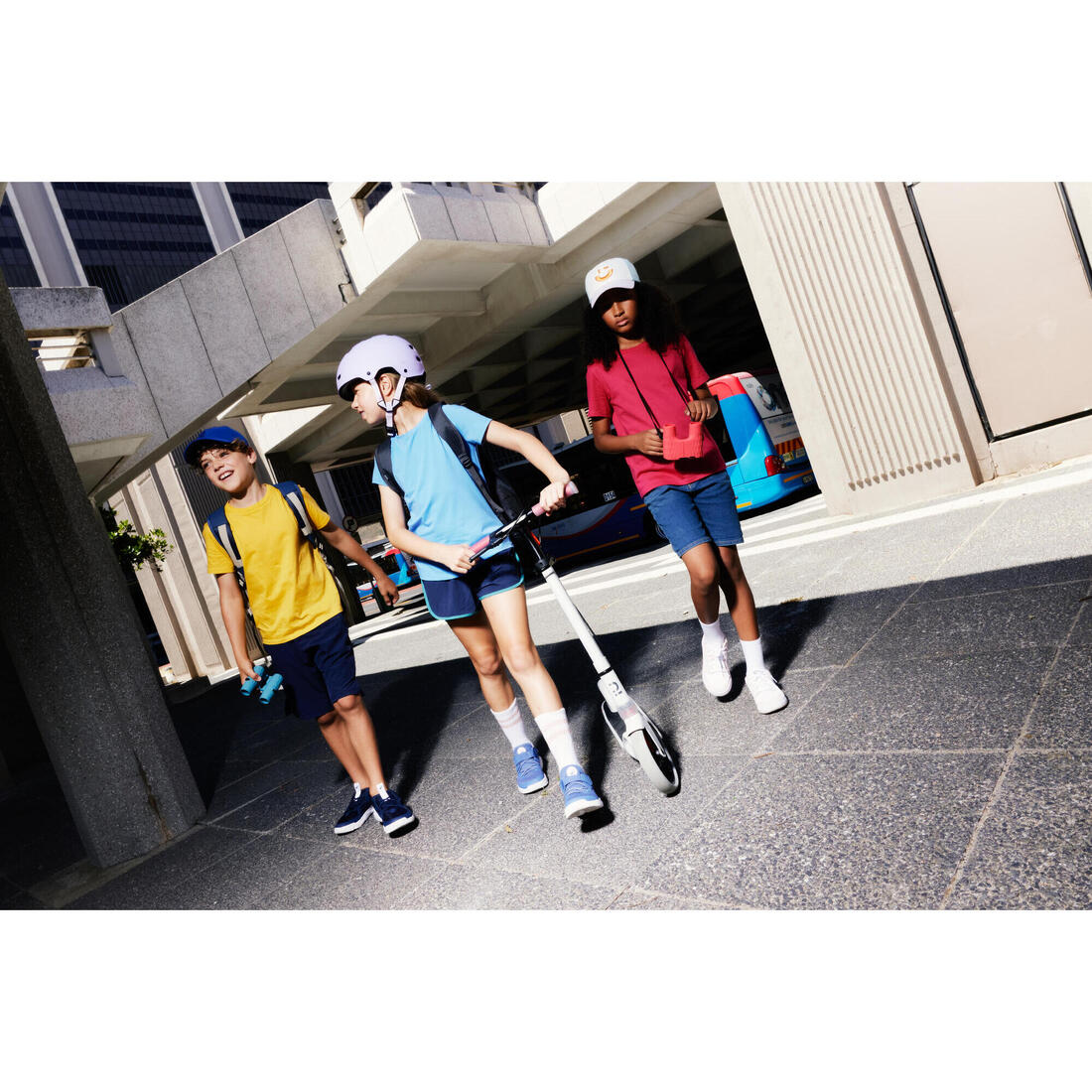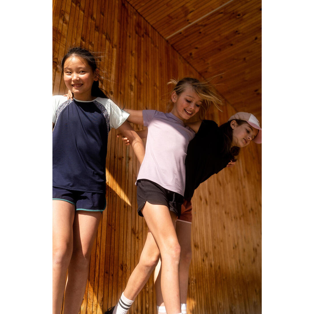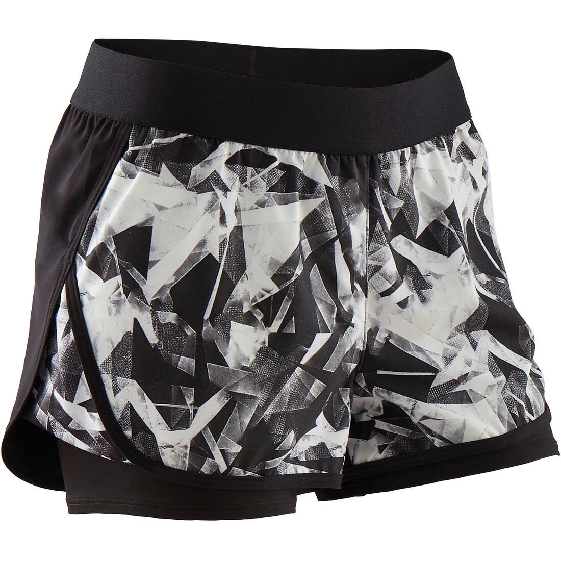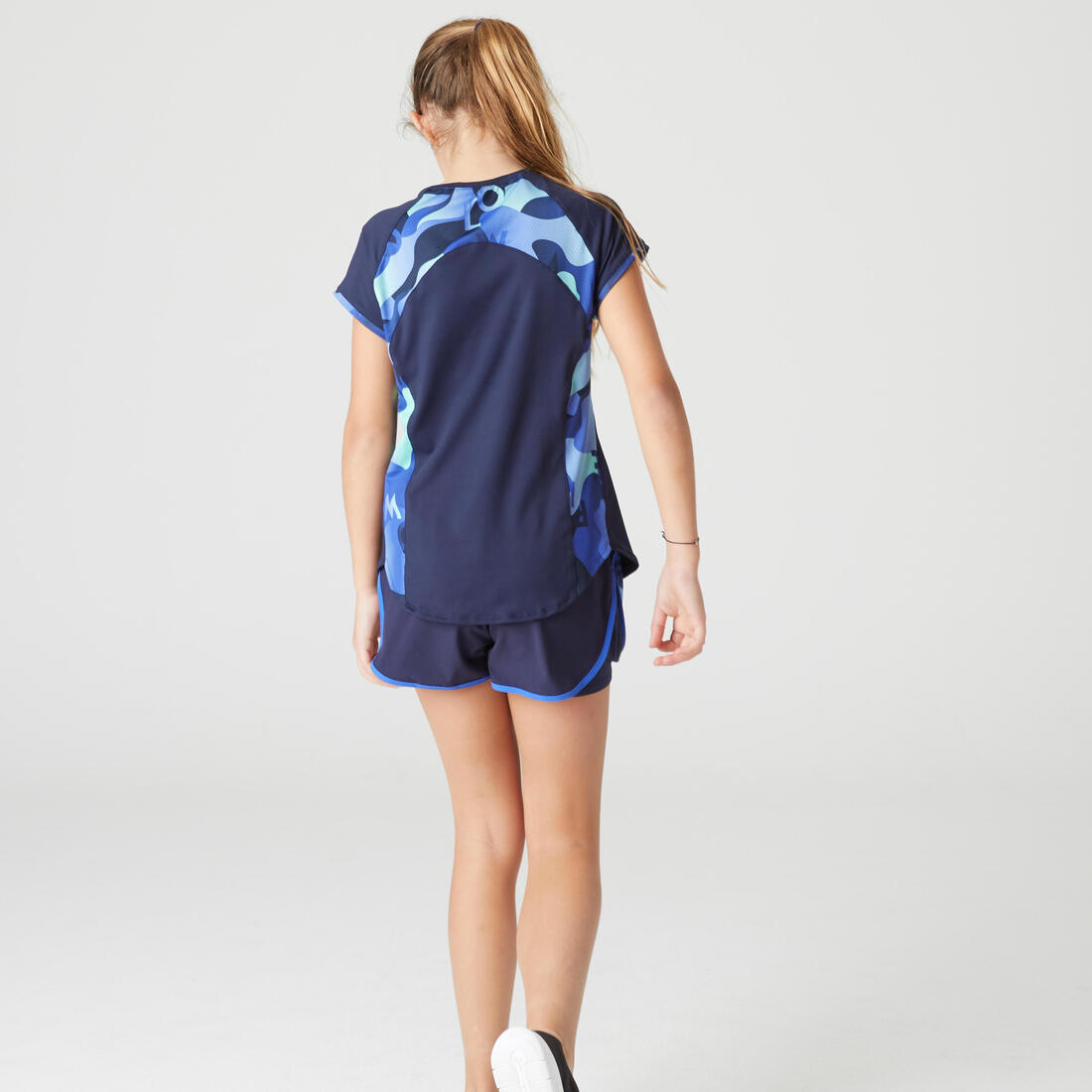 Short 2 en 1 multisport respirant fille, imprimé bleu et corail
