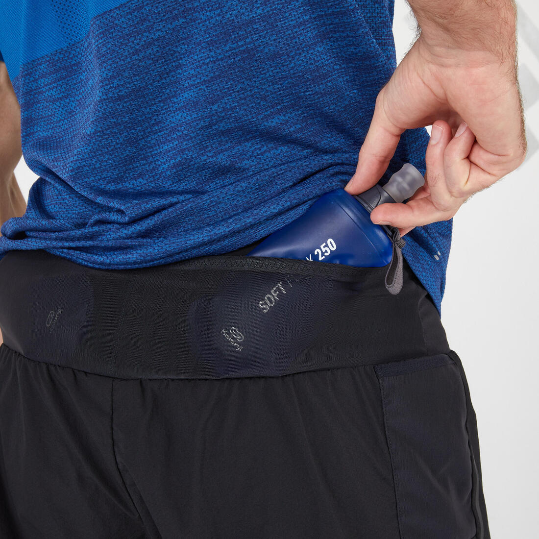 7 poches pour transporter 2 flasques (250ML), vos gels, vos accessoires et votre téléphone pour courir en toute autonomie. Une coupe longue pour limiter les irritations.