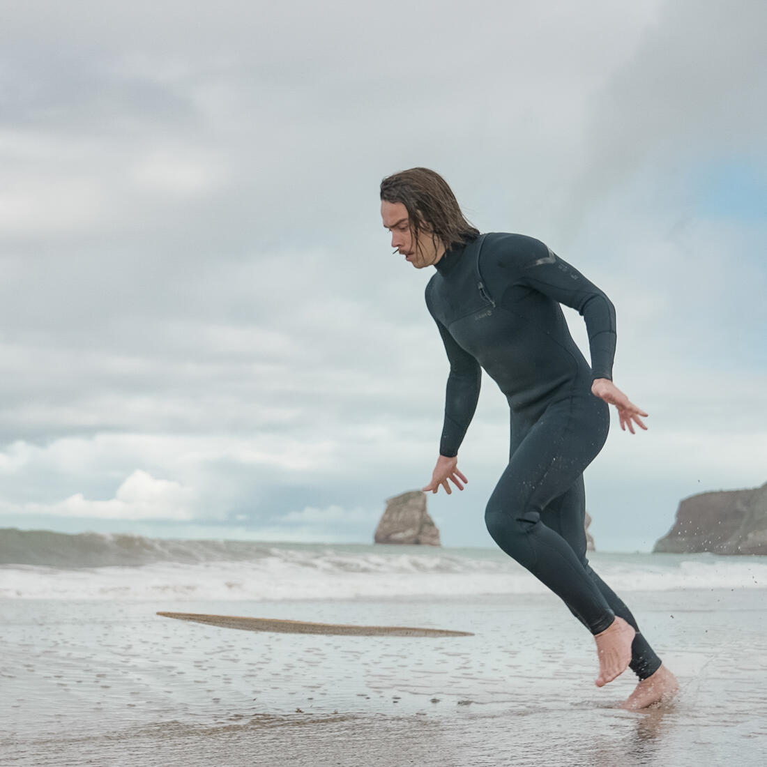 1) Le lancer : Entraînez vous à lancer votre planche le plus droit possible, sur une fine pellicule d'eau. 2) La course : Commencez à courir avec la planche en main, lancez votre planche puis sprintez pour monter sur celle-ci. Vos derniers pas doivent être les plus rapides possible.