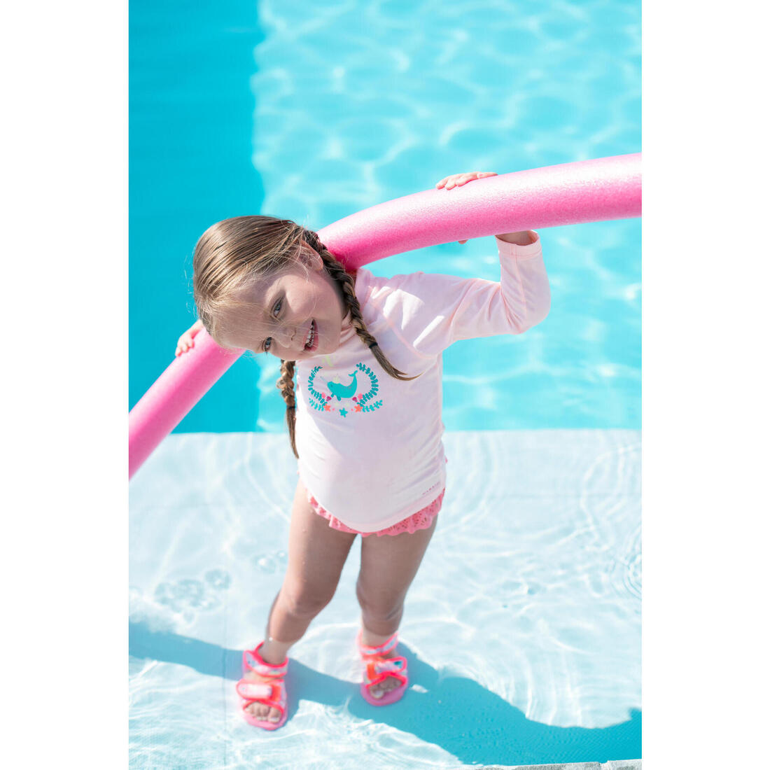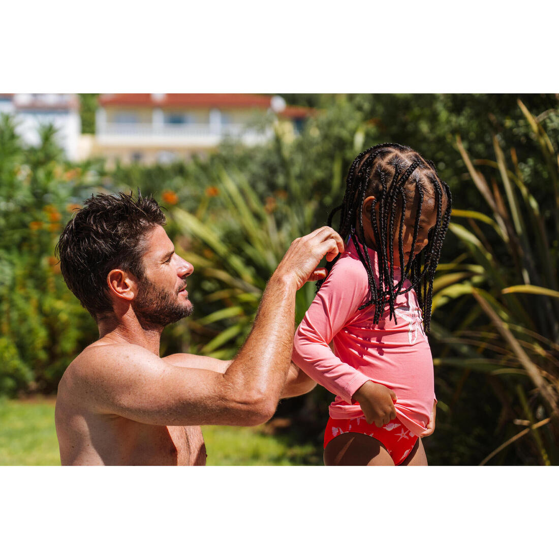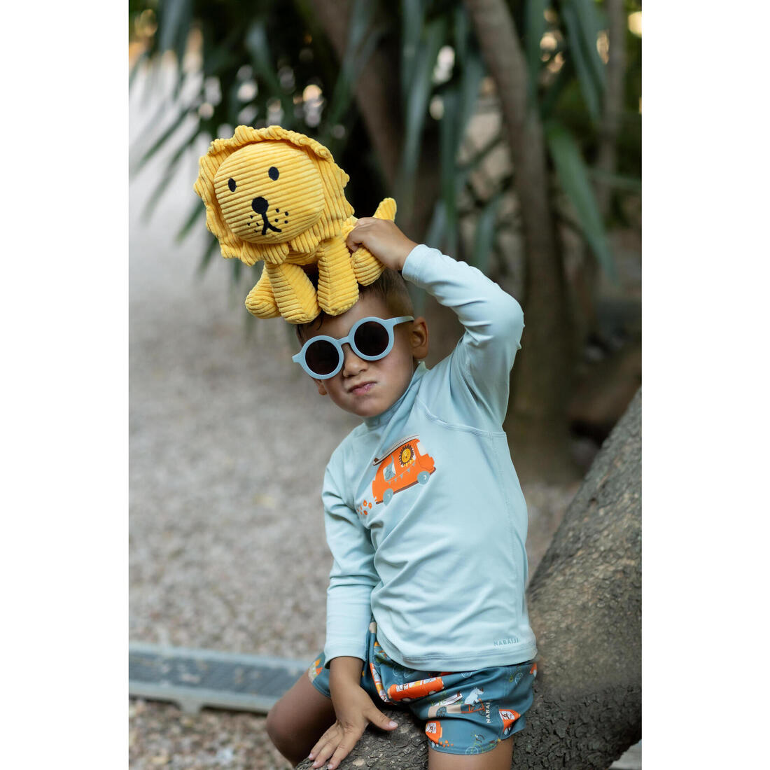 Avec ce tee shirt anti UV manches longues, les bébés sont protégés du soleil. À la piscine ou à la plage, ils peuvent jouer en toute tranquillité !