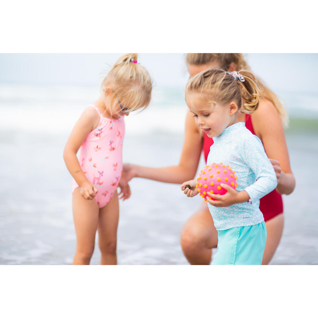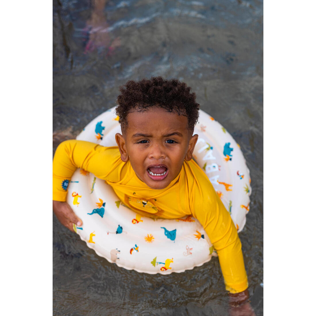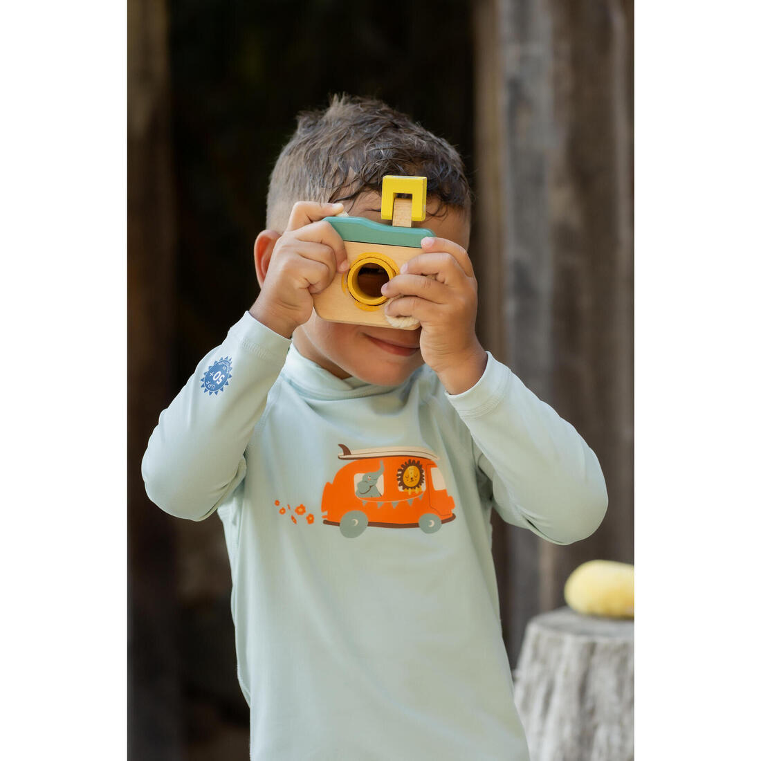 Avec ce tee shirt anti UV manches longues, les bébés sont protégés du soleil. À la piscine ou à la plage, ils peuvent jouer en toute tranquillité !