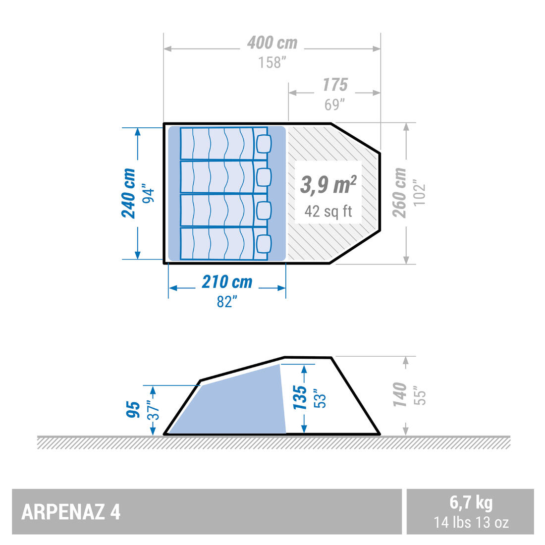 Cette tente de camping a été conçue pour un usage outdoor ponctuel (4 semaines par an) lors de vos sorties camping ou en pleine nature. Une exposition continue de plusieurs semaines aux UV peut endommager sa partie textile. Nos tentes n'entrent pas dans la catégorie "mobilier de jardin" et ne sont pas conçus pour rester en extérieur de façon permanente. Pour garantir une durée de vie optimale de votre tente, il est important de la ranger lorsqu'elle n'est pas utilisée. Garantie 3 ans.